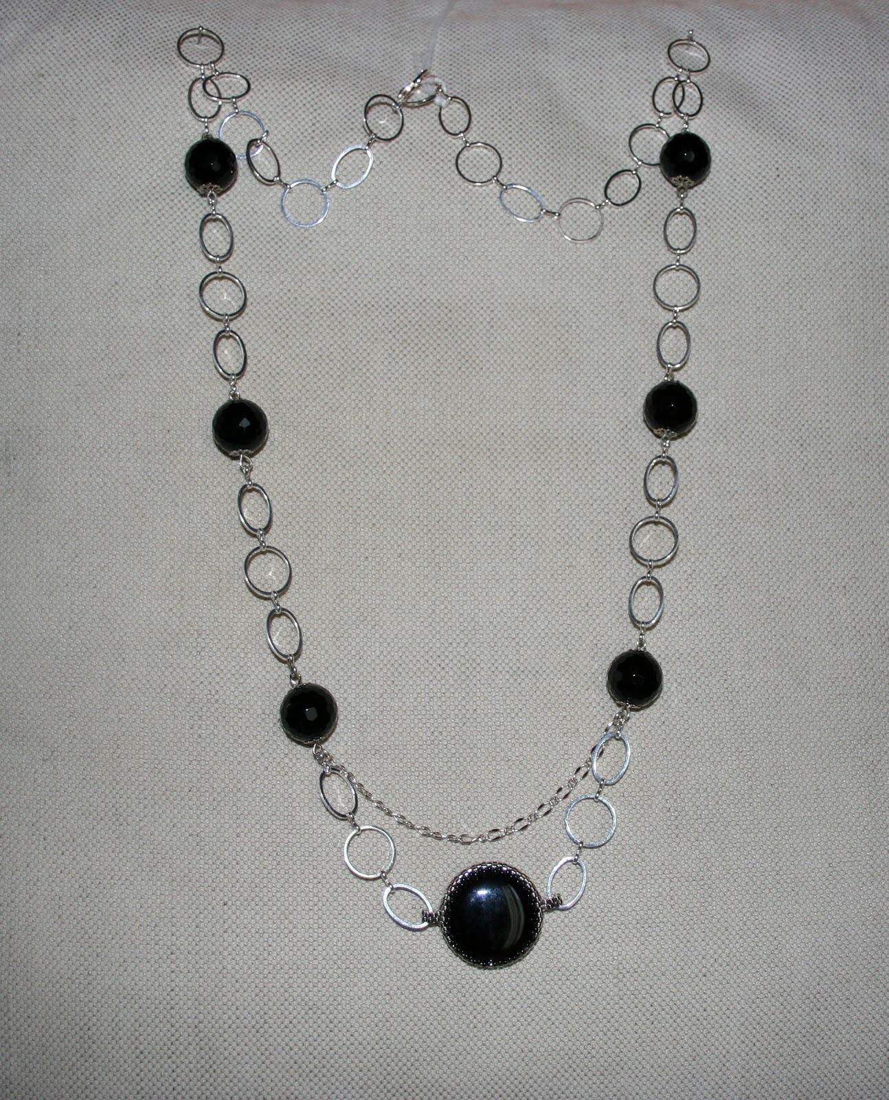 Collana con catena in metallo, sfere di onice e disco di onice incastonato con miyuki