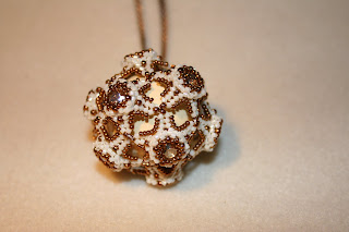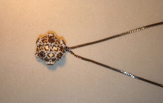 Collana con catena in metallo e ciondolo realizzato con 12 swarovski incastonati con Miyuki, all'interno del ciondolo sfera di legno