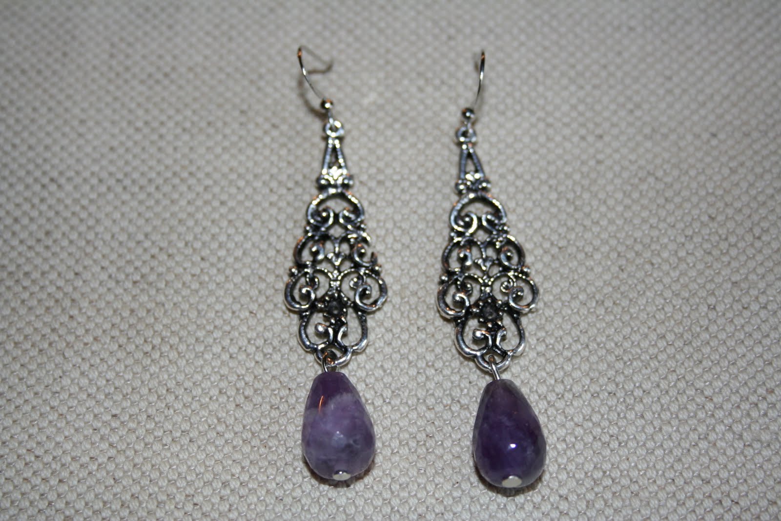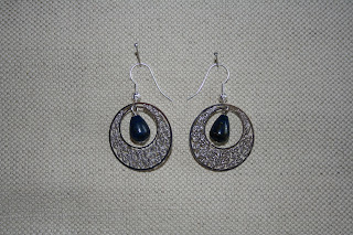 Orecchini con catena in metallo, onice nero e mezzo cristallo bianco